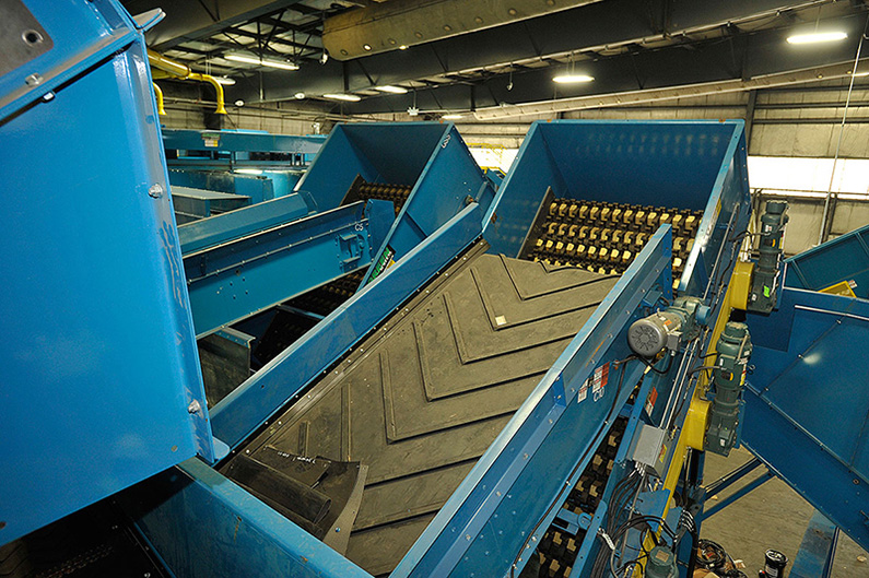 Pre-sort line. Materials too large for the downstream system to process are removed by hand prior to entering the OCC separation screens.