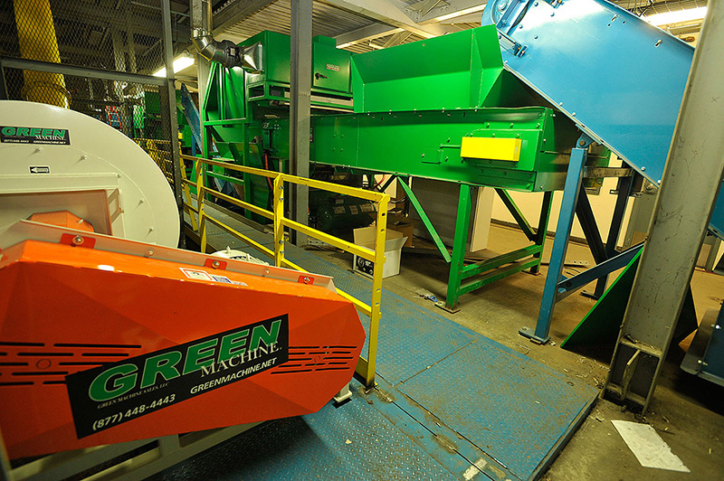 One of four Green Eye optical container sorters used to separate plastic bottles by type; also pictured is the bag vacuum system blower unit.